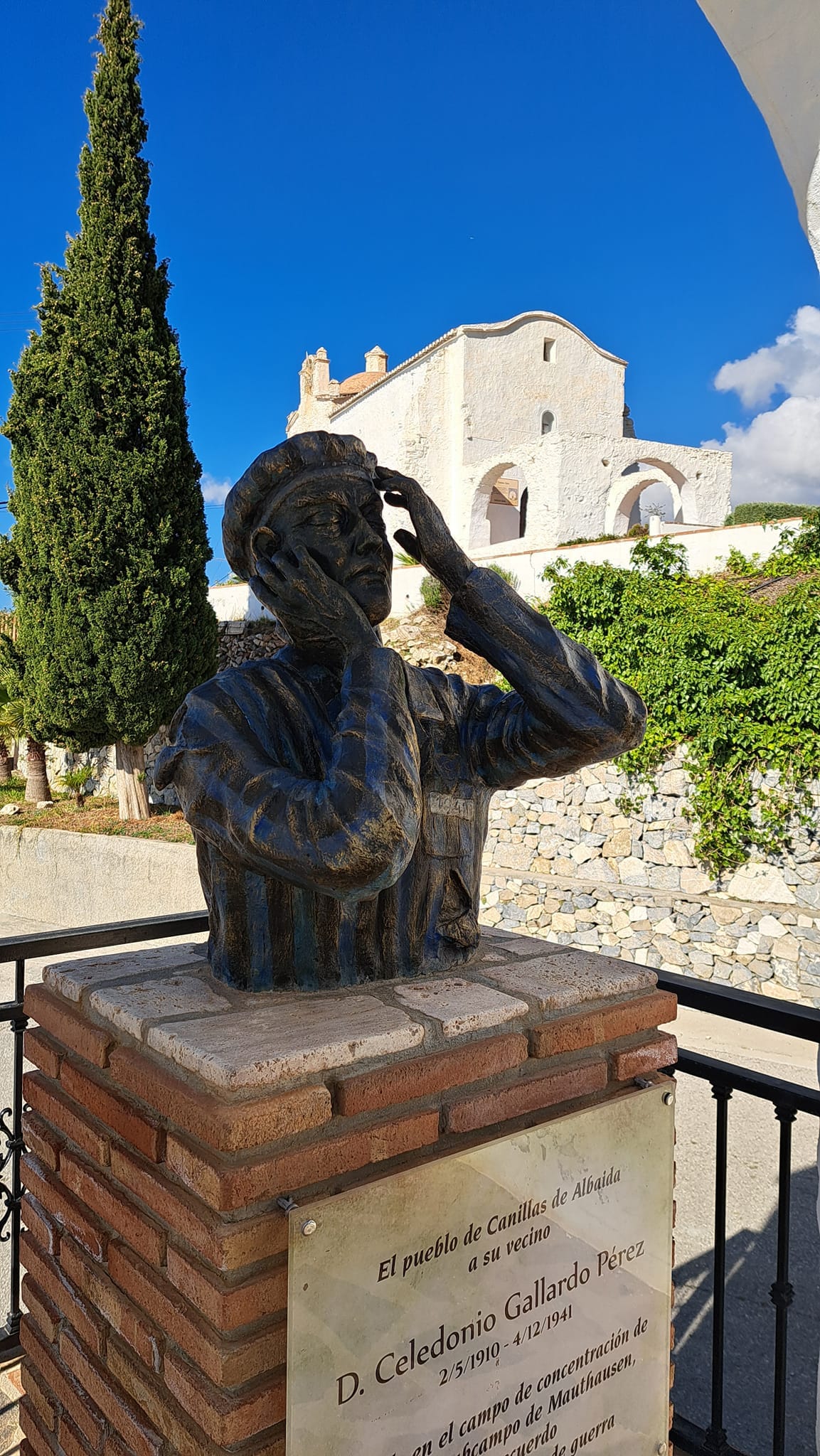 Vandaag was ik ook hondsitter voor een dagje. Fe (betekent vertrouwen in het spaans), de lieve hond van An en Frank, verbleef enkele dagen bij andere vrienden, maar zij vertrokken vandaag terug naar België. Ik pikte haar deze voormiddag op en wandelde met haar doorheen het dorp. Ondertussen nam ik ook een aantal foto’s voor de blog. Op één daarvan zie je een standbeeld voor de slachtoffers van de concentratiekampen. Ik reed en wandelde hier al zoveel maal voorbij, maar zag nu pas de betekenis ervan. Hoe toevallig is dat ?