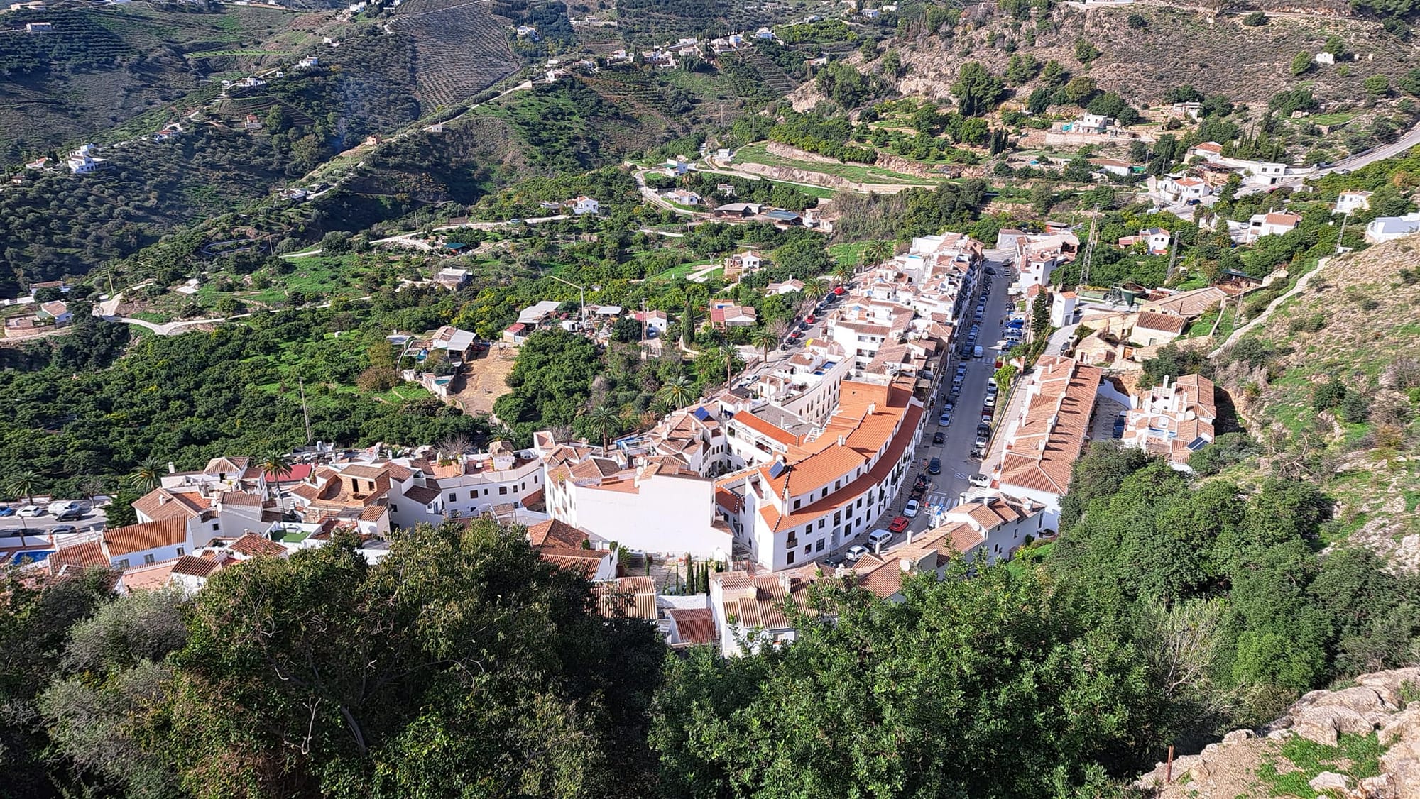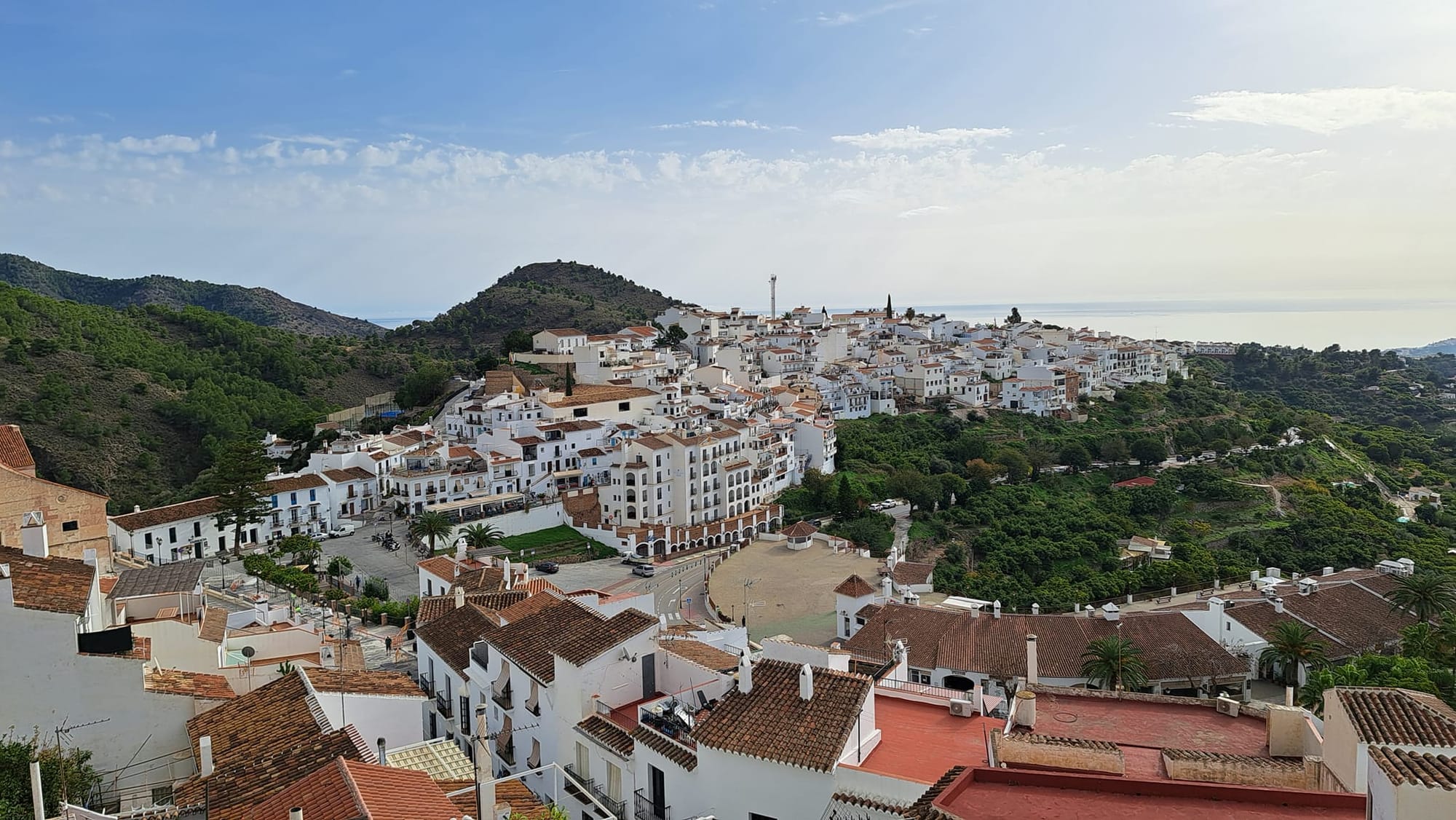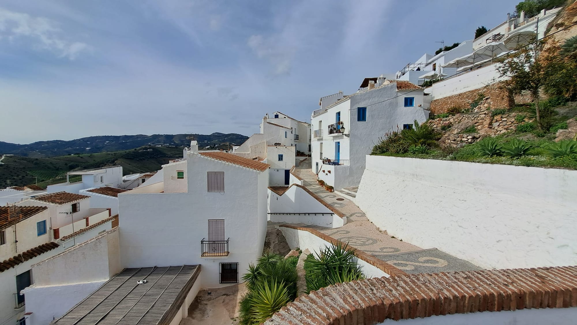 Vandaag overheersen de wolken, alhoewel de zon verwoede pogingen doet om erdoor te breken en ons te voorzien van wat warmte en vitamine D. Gisteren was het echter een topdagje. Blauwe hemel van ’s morgens vroeg, onze geplande uitstap naar Frigiliana kon al niet meer stuk.