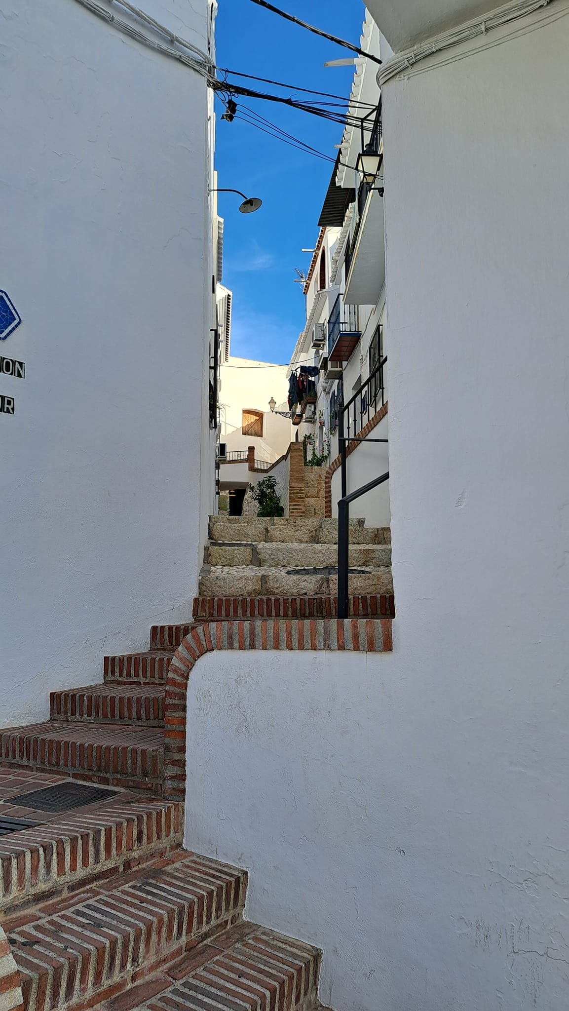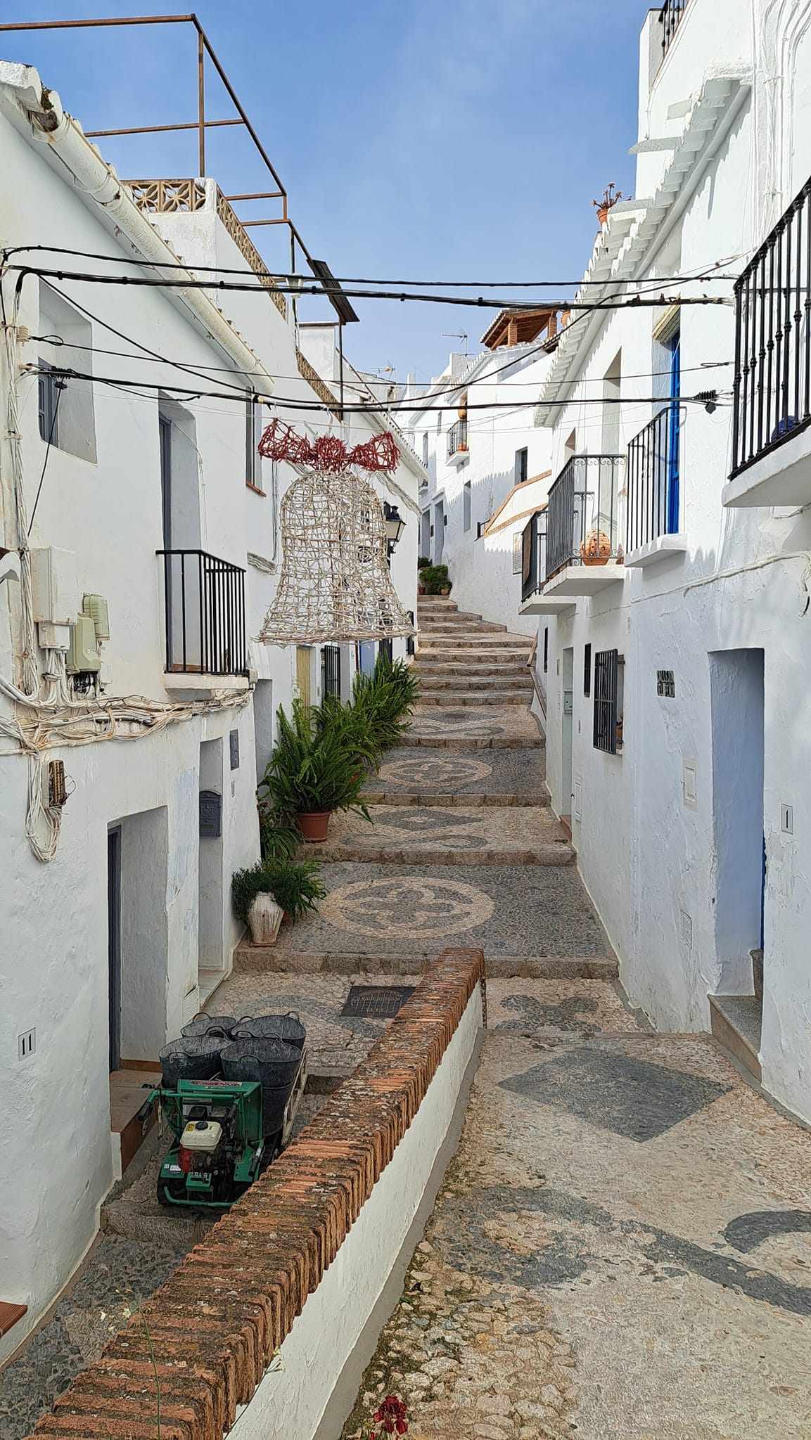 Rond half twaalf parkeerde ik mij op een boogscheut van het kloppend hart van Frigiliana. Het centrum was afgesloten, want de mensen van de gemeentediensten waren volop bezig met het aanbrengen van de kerstverlichting. We zijn er ondertussen al aan gewend, maar toch voelt het nog een beetje contradictorisch, kerstverlichting met temperaturen van 24 graden…