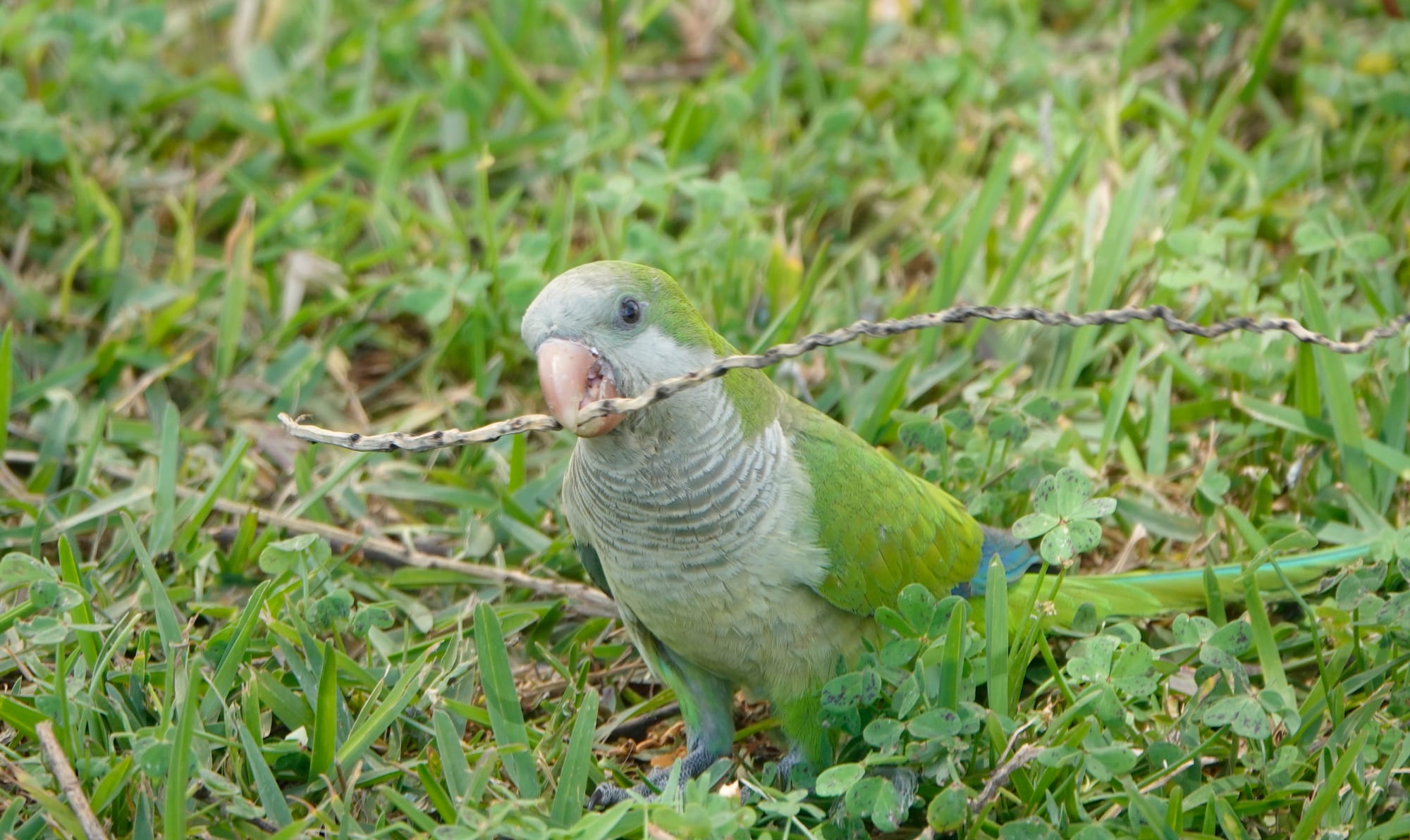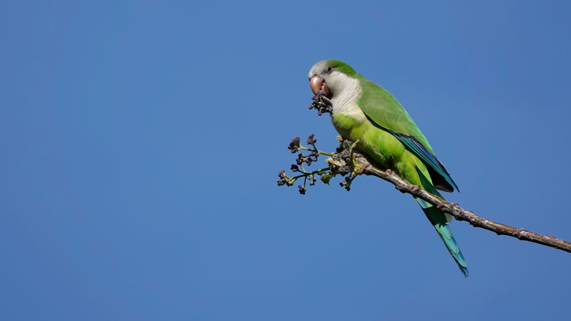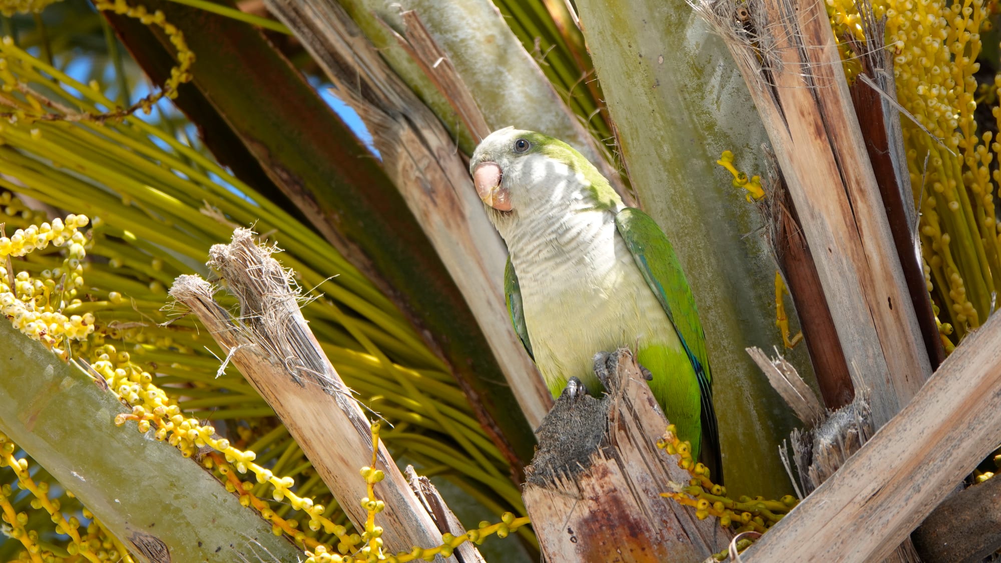 De monniksparkiet ( Myiopsitta monachus ) komt oorspronkelijk uit de subtropische gebieden van Argentinië, het zuidelijk deel van Brazilië en Zuid-Amerika en heeft zich goed aangepast aan het klimaat in Spanje. Ze leven in grote groepen en hun belangrijkste voedsel bestaat uit bladknoppen, zaden, vruchten, noten en bloesem.