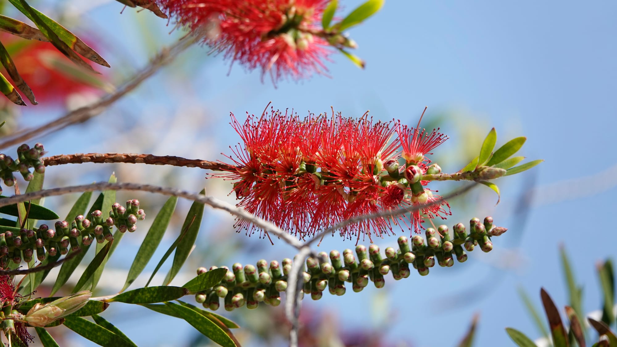 Ondanks het feit dat het luidruchtige vogels zijn, vind ik ze zeer fascinerend. Ze zijn intelligent, passen zich aan alle omstandigheden aan en er wordt beweerd dat ze een speciale band kunnen vormen met de mensen die ze houden. Ik heb ze vandaag goed bestudeerd en het zijn echte acrobaten, ze hangen ondersteboven in de palmen en snijden met hun snavel de gedroogde takjes van de dadels om ze dan naar hun nest te brengen. De kleine tot middelgrote takjes die zijn meegespoeld door het water, zijn natuurlijk goede bouwstenen voor hun grote nesten. Het strand en de rivierbedding ligt er vol van, dus is het overal een drukte van jewelste.